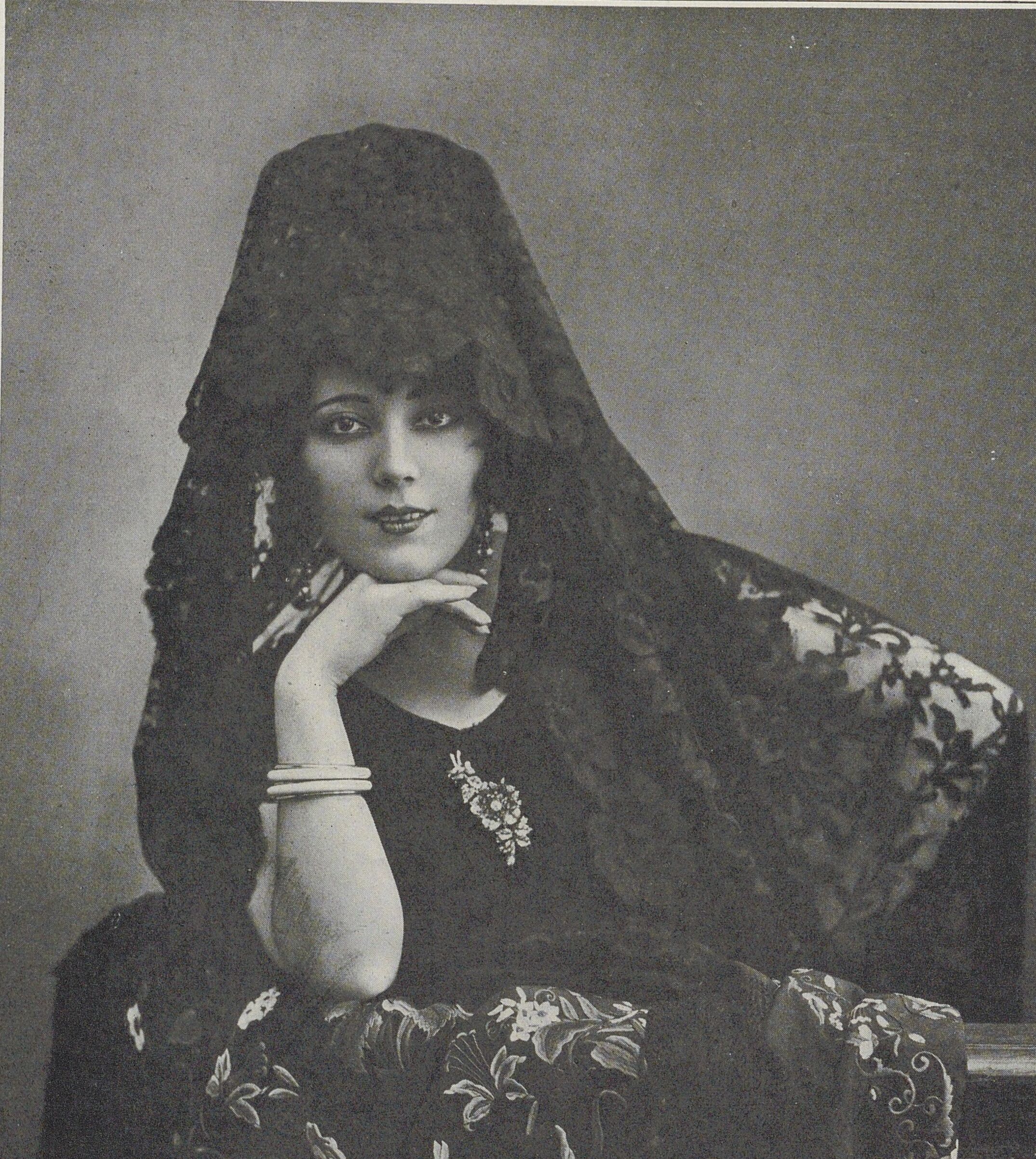 […]Fidèle a sa parole, Raquel Meller a de nouveau triomphé. M. Paul Franck, qui dirige le music-hall du boulevard des Capucines, l’a preséntée en un décor du peintre Léonard Sarluys. Au primer plan, des colonnes mauresques; au fond, la balustrade d’une terrasse et le lion évoquant aussi les monuments de l’Andalousie; l’architecture simple encadre un paysage grave aux sombres cyprès. Et c’est ensuite la vision d’une mosquée ardente ou dorée de soleil.